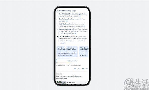一個(gè)核心問(wèn)題在于,AI搜索廣告能否復(fù)制傳統(tǒng)關(guān)鍵詞廣告的成功?目前,用戶與AI的交互仍以解釋、總結(jié)和探索為主,難以精準(zhǔn)匹配具體產(chǎn)品關(guān)鍵詞。例如,在谷歌的演示中,用戶咨詢(xún)水壓?jiǎn)栴}時(shí),系統(tǒng)推薦的是水管工服務(wù)而非增壓泵等具體工具。這種“模糊匹配”是否影響廣告效果,仍需驗(yàn)證。