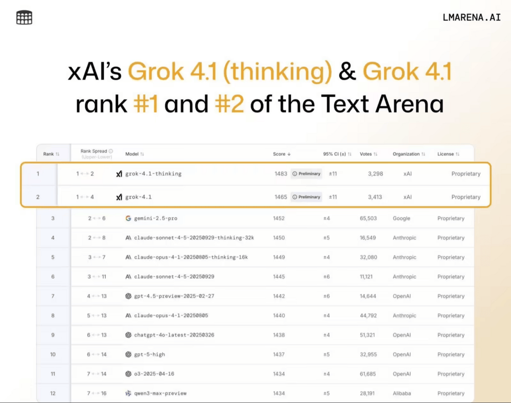 馬斯克xAI公司再發(fā)力!Grok 4.1大模型性能飛躍,情感創(chuàng)意雙提升