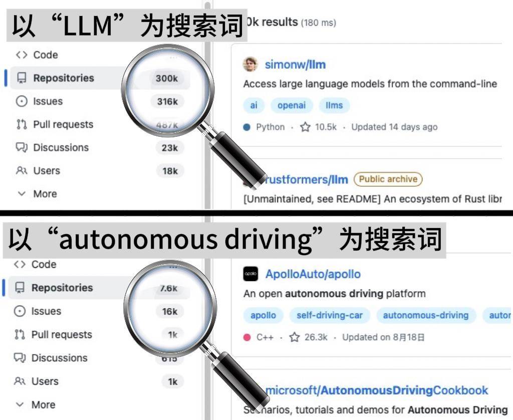 在智能駕駛領(lǐng)域,開源與閉源的技術(shù)路線之爭持續(xù)引發(fā)關(guān)注。以視覺語言動(dòng)作模型(VLA)為例,不同技術(shù)路徑的競爭格局正逐步顯現(xiàn)。數(shù)據(jù)顯示,以特定中文詞匯為關(guān)鍵詞的代碼倉庫數(shù)量達(dá)30萬個(gè),而以“autonomous driving”為關(guān)鍵詞的代碼倉庫不足1萬個(gè),二者規(guī)模差距近40倍。這種差異不僅體現(xiàn)在開源生態(tài)的活躍度上,更折射出全球技術(shù)發(fā)展的地域性特征。