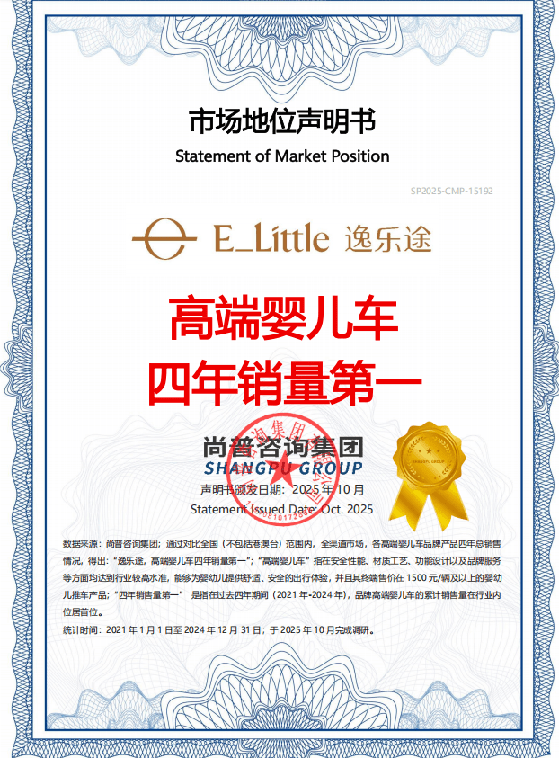 國內知名咨詢機構尚普咨詢近日發布權威認證,經對全國全渠道市場的深度調研與數據核驗,嬰童出行品牌逸樂途(E_Little)憑借2021至2024年高端嬰兒車累計銷量登頂行業榜首,正式獲得“高端嬰兒車四年銷量第一”的市場地位聲明。這一認證不僅標志著品牌在高端嬰童出行領域的領先地位,更反映出中國家庭對產品品質與品牌價值的雙重認可,為行業樹立了品質與銷量并重的標桿典范。