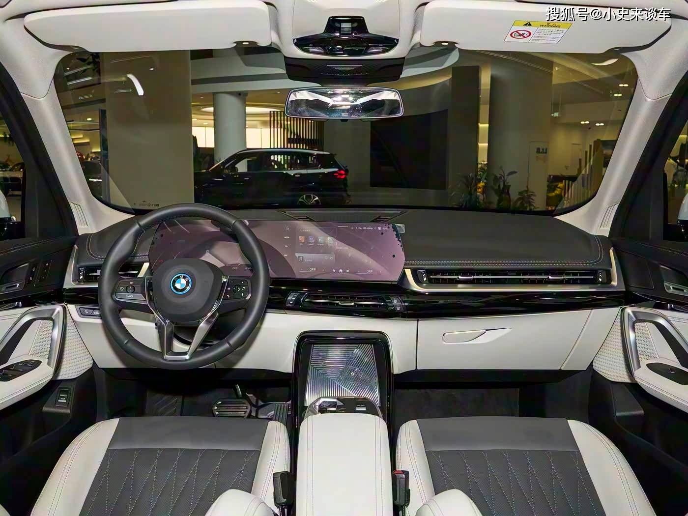 車身設計融合運動美學與空氣動力學智慧。4616mm車長搭配2802mm超長軸距,在緊湊級SUV中實現空間效率最大化。側面線條流暢延伸至車尾,19英寸雙色輪轂與半隱藏式門把手形成視覺平衡,藍色側裙裝飾條點明新能源身份。創新設計的后視鏡與車窗無縫銜接,既降低風阻又保留寶馬標志性運動氣質。車頂行李架與鯊魚鰭天線不僅提升實用性,更勾勒出立體車頂輪廓。