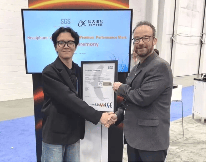 在拉斯維加斯舉辦的國際消費電子展(CES)期間,國際權威測試、檢驗與認證機構SGS攜手科大訊飛等企業共同發布了《智能穿戴產品佩戴舒適度評估白皮書》。這一成果標志著智能穿戴行業在舒適性評估領域邁出了關鍵一步,為產品優化提供了科學依據。科大訊飛AI翻譯耳機憑借在佩戴舒適性上的突出表現,榮獲SGS頒發的“耳機佩戴舒適性 Premium Performance Mark”認證,成為行業標桿。