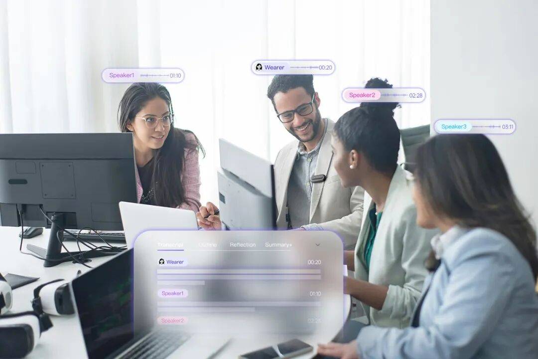 如果說外觀是ANYPIN的“外在魅力”,那么其內(nèi)置的硬核技術(shù)則是獲獎(jiǎng)的“內(nèi)在靈魂”。在功能與差異化維度上,ANYPIN構(gòu)建了“聽得清、分得準(zhǔn)、管得住”的完整技術(shù)體系。通過設(shè)備與APP智能協(xié)同,內(nèi)置的自適應(yīng)處理系統(tǒng)能自動(dòng)識(shí)別工作場(chǎng)景,實(shí)現(xiàn)錄音自動(dòng)啟停,手動(dòng)干預(yù)頻率降低70%以上,讓記錄過程輕松自然。在音質(zhì)保障方面,搭載四麥陣列與自研AI環(huán)境降噪算法,即便在65dBA的嘈雜環(huán)境中,也能清晰捕捉5米范圍內(nèi)的人聲對(duì)話。在傳輸與兼容性上,支持WiFi聯(lián)網(wǎng)與AP極速傳輸,速度較傳統(tǒng)藍(lán)牙方式提升5倍以上,還支持MP3、WAV及文本速記稿等多種導(dǎo)出格式。智能分析方面,AI錄音轉(zhuǎn)寫覆蓋中英西德法等100多種語言,文字誤差率低于3%,能自動(dòng)生成會(huì)議紀(jì)要框架與結(jié)構(gòu)化大綱,并提供上百種行業(yè)模板,助力用戶快速完成總結(jié)輸出。首創(chuàng)的多人分離空間路由算法,突破傳統(tǒng)聲紋識(shí)別局限,可精準(zhǔn)區(qū)分發(fā)言人,并自動(dòng)生成會(huì)議紀(jì)要框架,融合四麥陣列、AI環(huán)境降噪與空間分離路由技術(shù),形成完整技術(shù)鏈路。