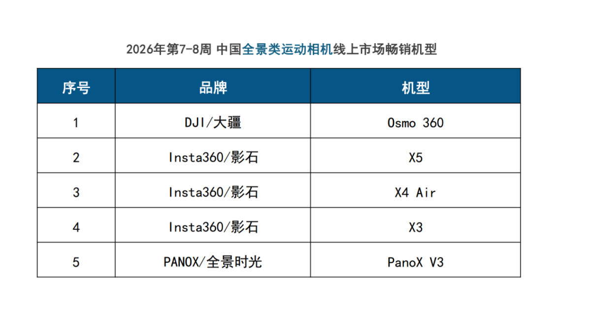 行業(yè)競爭還會繼續(xù)。Insta360依然強勁,其他品牌也在嘗試突圍。可從2026年開年的這份雙周報告看,大疆已經(jīng)在泛運動相機市場形成穩(wěn)定結(jié)構(gòu)性優(yōu)勢。