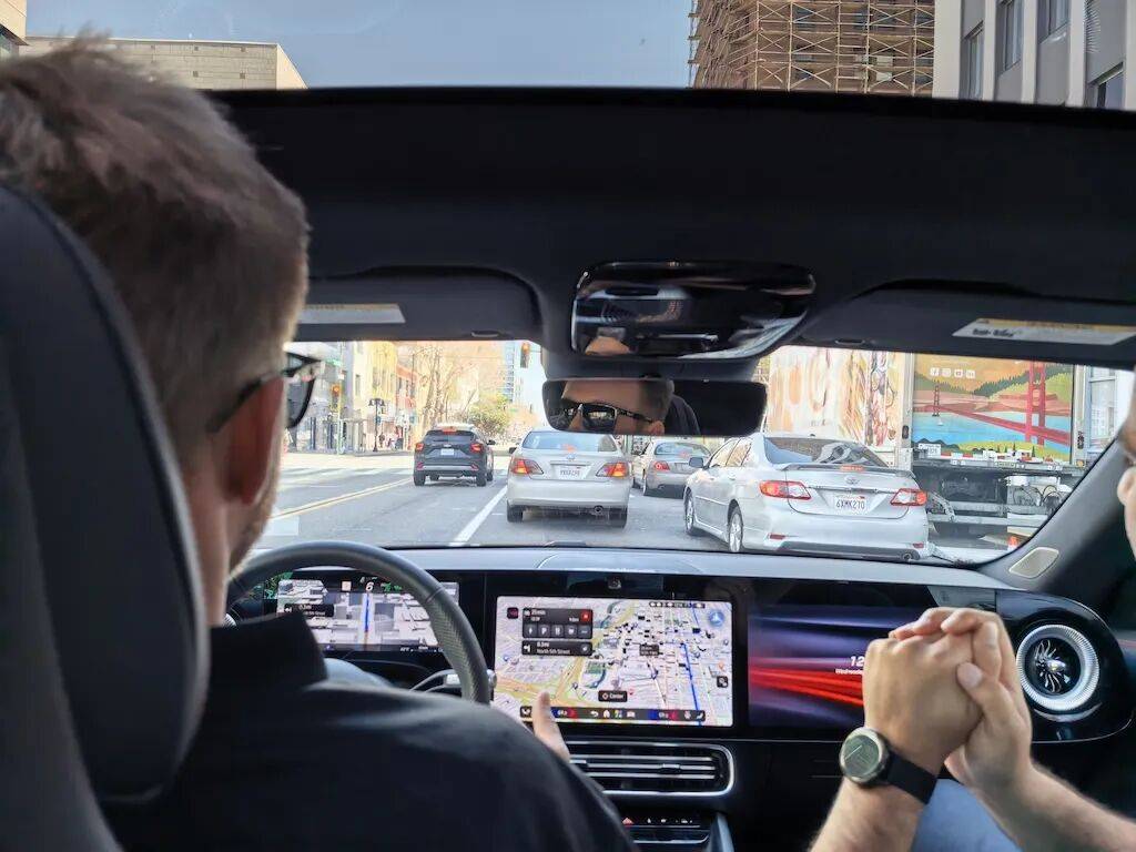 與國(guó)內(nèi)智能駕駛試駕偏好重慶、成都這類交通復(fù)雜地段不同,此次圣何塞的試駕路線顯得波瀾不驚。然而,平靜之下,英偉達(dá)在智能駕駛行業(yè)的野心正洶涌澎湃。試駕過(guò)程中,車輛的智能駕駛表現(xiàn)有不少亮點(diǎn)。在四向停路口,車輛準(zhǔn)確識(shí)別并遵循美國(guó)復(fù)雜的路權(quán)規(guī)則,按先到先得順序,穩(wěn)穩(wěn)通過(guò);遇到高速變道帶,提前減速,以平滑節(jié)奏完成變道,如同經(jīng)驗(yàn)豐富的老司機(jī)。不過(guò),在一個(gè)行人距離尚遠(yuǎn)的人行橫道前,系統(tǒng)判斷可通行,車未停下,安全員卻自然地踩下剎車讓行人先行,這一場(chǎng)景凸顯出系統(tǒng)與人類駕駛在“禮讓感”上的差異,系統(tǒng)雖符合規(guī)則,卻缺乏人類那種“超出規(guī)則的禮讓”。