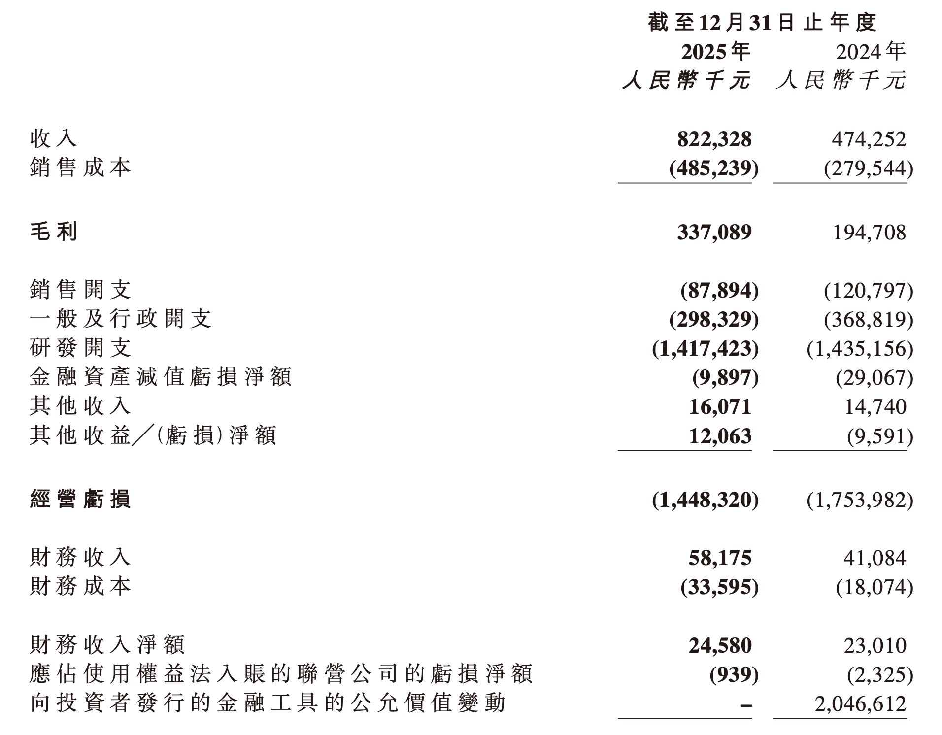 值得關(guān)注的是,公司2025年出現(xiàn)賬面由盈轉(zhuǎn)虧的現(xiàn)象,主要源于會計處理方式的調(diào)整。2024年因優(yōu)先股公允價值變動產(chǎn)生的20.47億元非經(jīng)常性收益,在2025年隨著上市后股本結(jié)構(gòu)變化而消失。若剔除該因素影響,公司主營業(yè)務虧損幅度實際呈現(xiàn)收窄趨勢,每股虧損從2024年的1.2元擴大至2.4元,主要受股本擴大導致攤薄效應增強所致。