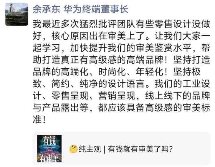 余承東直指團(tuán)隊(duì)零售設(shè)計(jì)短板:審美待提升,共筑高端品牌新高度