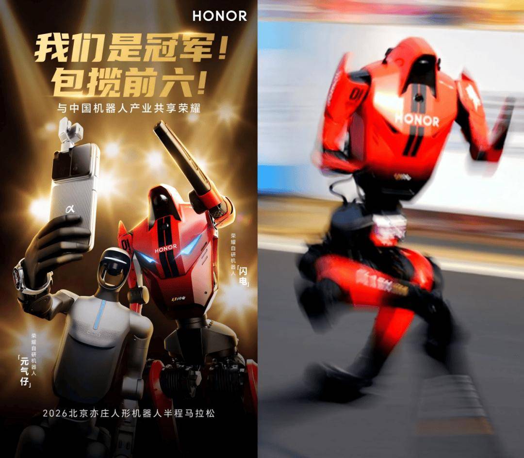 在近日落幕的亦莊人形機器人半程馬拉松賽事中,一場看似“爆冷”的逆襲引發行業震動——手機廠商榮耀推出的“閃電”機器人不僅以破紀錄成績包攬賽事前六名,更在技術、產品與商業層面實現對傳統機器人巨頭的全面超越。這場賽事被視為人形機器人行業格局重構的縮影,標志著消費電子巨頭正以“降維打擊”之勢重塑賽道規則。