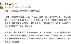 雷軍親測新一代SU7:15小時京滬續(xù)航直播,1313公里僅充電一次挑戰(zhàn)圓滿成功