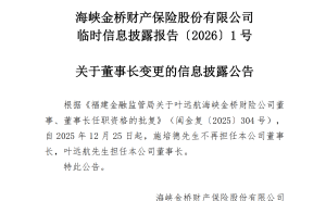 北京商報訊(記者 李秀梅)1月7日,北京商報記者注意到,海峽金橋財產保險股份有限公司(以下簡稱“海峽保險”)日前公告,根據《福建金融監管局關于葉遠航海峽金橋財險公司董事、董事長任職資格的批復》(閩金復〔202…
