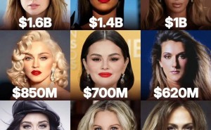 Taylor Swift(泰勒·斯威夫特) 凈身家:16億美元 2. Rihanna(蕾哈娜) 凈身家:14.4億美元 3.Beyoncé(碧昂絲) 凈身家:10億美元 4. Madonna(麥當娜…