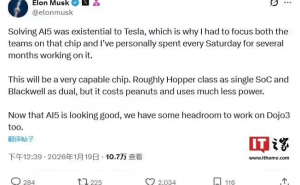 月 19 日消息,埃隆 · 馬斯克剛剛在 X 平臺對旗下企業特斯拉的下代人工智能芯片 AI5 發布了進一步的看法,表示 AI5 在單 SoC下的性能與英偉達 Hopper 相近、雙 SoC 配置則能媲美英偉…